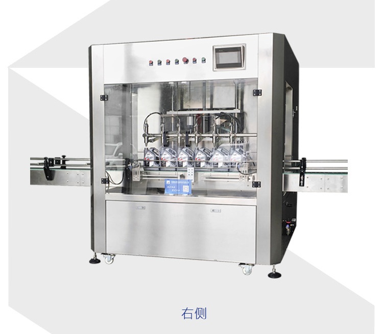 該六頭柱塞式全自動潤滑油灌裝機獨特的灌裝頭設計及真空回吸系統,確保灌裝過程無殘油滴漏,快慢雙速灌裝,灌裝速度可調,杜絕溢瓶現象。