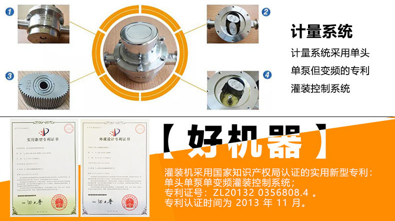 該系列灌裝機采用流量計式計量灌裝原理,多項認證,適用于各種規格(1-5升)的南瓜籽油、榛子油、牡丹籽油、芝麻油、核桃油、山茶油