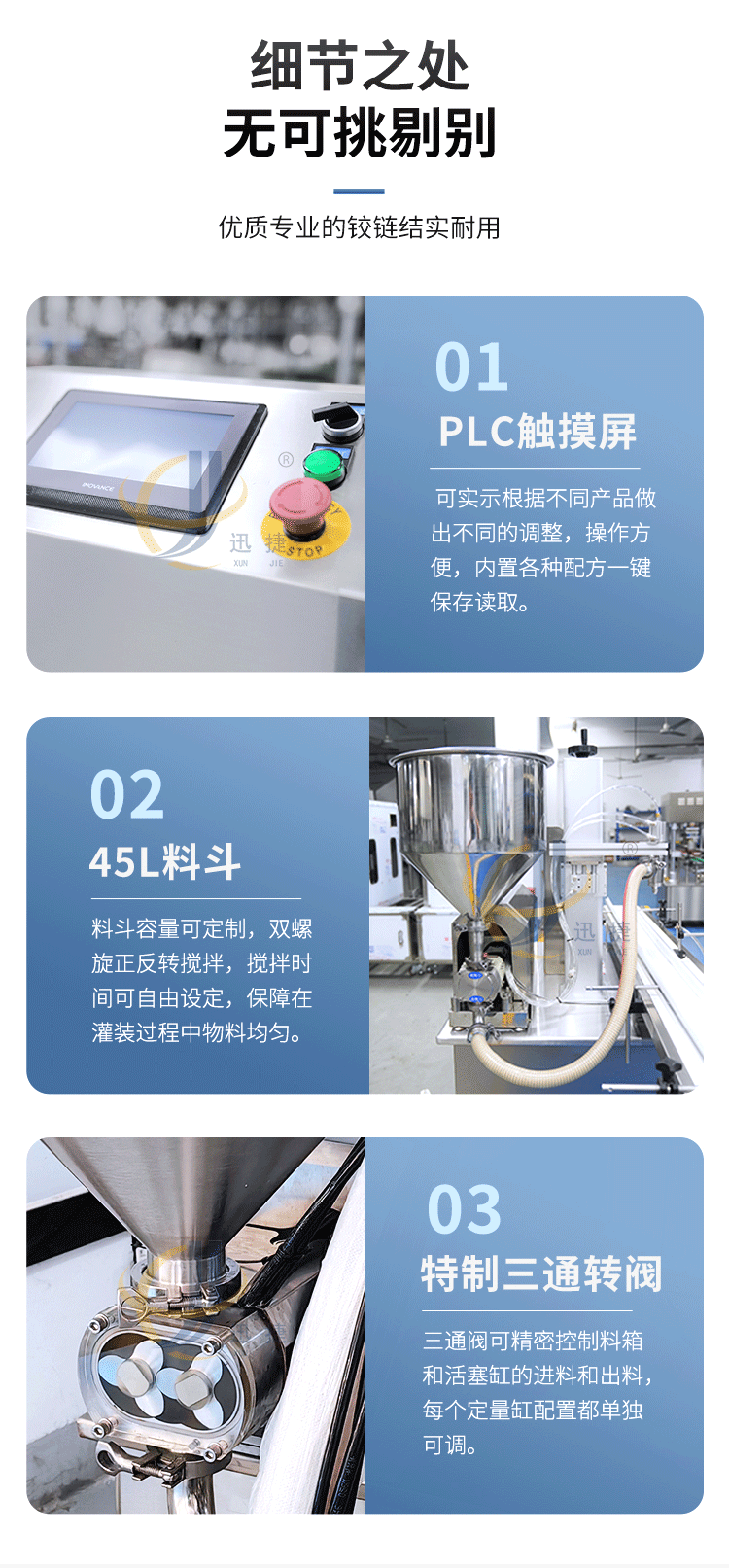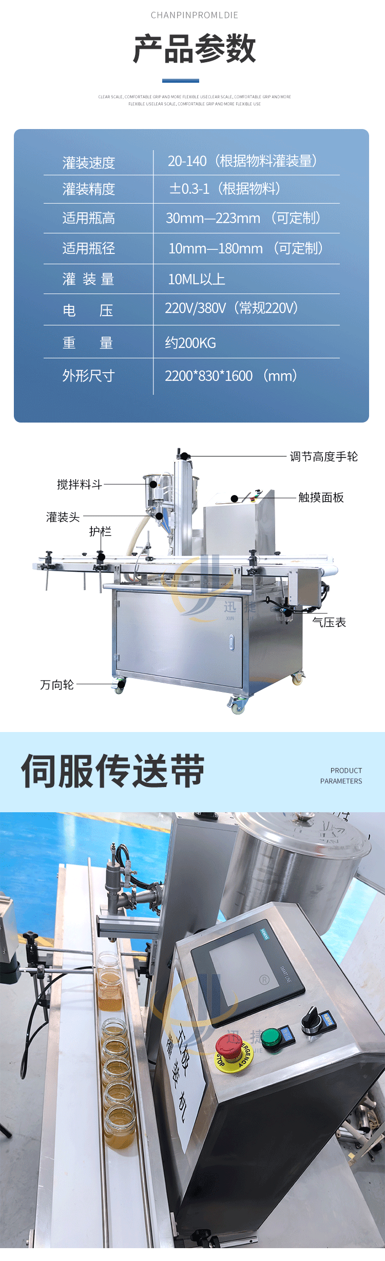 五極灌裝機(jī):極快-單頭2200瓶/時(shí) 極簡-操作簡單 極廣-啥啥都能灌 極穩(wěn)-24小時(shí)不停機(jī) 極準(zhǔn)-200g誤差小于1g。