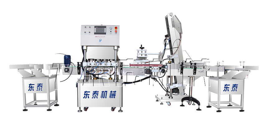 全自動直線式真空旋蓋機采用世界知名工廠電器和氣動元件,故障率低,性能穩定可靠,使用壽命長,主要用于玻璃瓶馬口鐵蓋的灌裝。