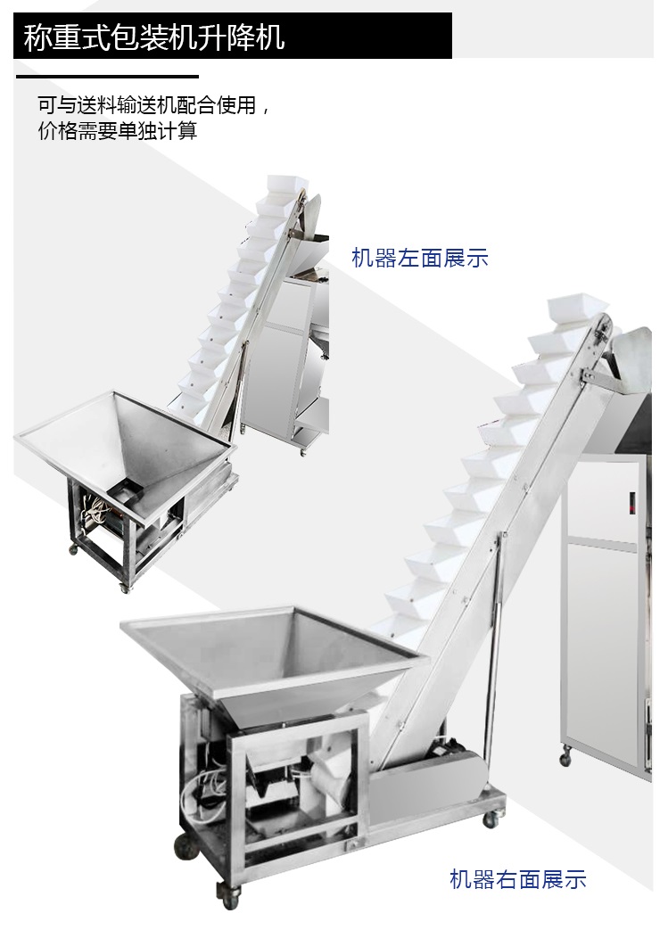 稱重包裝機針對包裝對象的形態類別可分為顆粒稱重包裝機、粉劑稱重包裝機、全自動稱重包裝機、食品稱重包裝機等,稱重包裝機稱重一字的意義是非常重大的, 包裝機帶有了稱重的標志表明包裝機的包裝計量更加的準確,相對一般包裝機的突出的特點是多添加了包裝秤,保證被包裝對象在這里得到很好的計量稱重,計量 的準確性,大大的保證了消費者的利益,同時本款稱重包裝機采用不銹鋼的材質,清洗護理更加方便,同時本款稱重包裝機和其他的機械如封口機、噴碼機、貼標 機、打包機等可形成便捷的包裝機生產線。